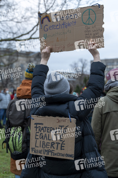 Coronaproteste und satirischen Gegenproteste auf dem Platz der Einheit. Laut Angaben verliefen die Demos friedlich, die Polizei war vor allem mit der Kontrolle von Maskenbefreiungen beschäftigt. Potsdam, 08.01.2022
