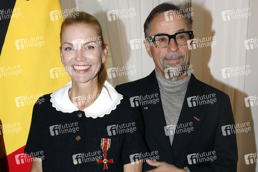 Anna Loos und Jan Josef Liefers bei der Verleihung des Verdienstkreuzes am Bande der Bundesrepublik Deutschland an Anna Loos im Schloss Bellevue. Berlin, 01.10.2025