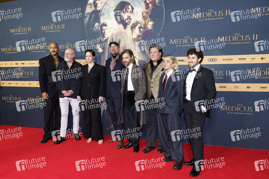 Malick Bauer, Liam Cunningham, Emily Cox, Christoph Stölzl, Tom Payne, Francis Fulton-Smith, Rosie Boore und Jaouhar Ben Ayed bei der Weltpremiere von 'Der Medicus II / The Physician II' im Cinedom. Köln, 15.12.2025
