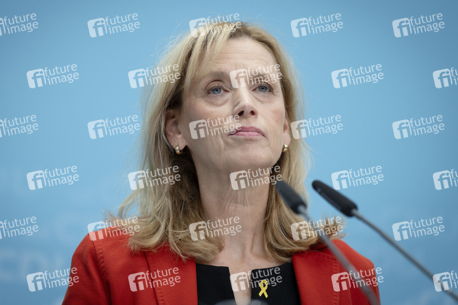 Karin Prien bei der Pressekonferenz der CDU im Anschluss an die Gremiensitzungen im Konrad-Adenauer-Haus. Berlin, 06.10.2025