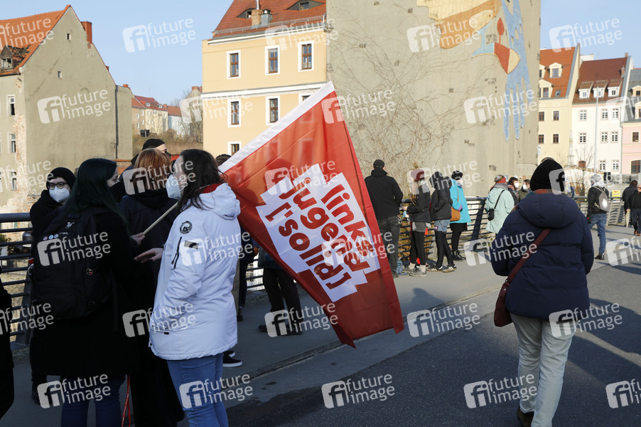An einer Soliaritätsaktion für die Ukraine auf Initiative von Strajk Kobiet Zgorzelec auf der Altstadtbrücke nahmen zahlreiche Görlitzer und Zgorzelecer teil. Dabei haben auch der Görlitzer Oberbürgermeister Octavian Ursu und der Bürgermeister von Zgorzelec, Radosław Baranowski teil, die in ihren Ansprachen sagten, dass wir an der Seite des ukrainischen Volkes stehen und die Invasion durch Russland sofort gestoppt werden muss. Görlitz / Zgorzelec (Polen) 27.02.2022