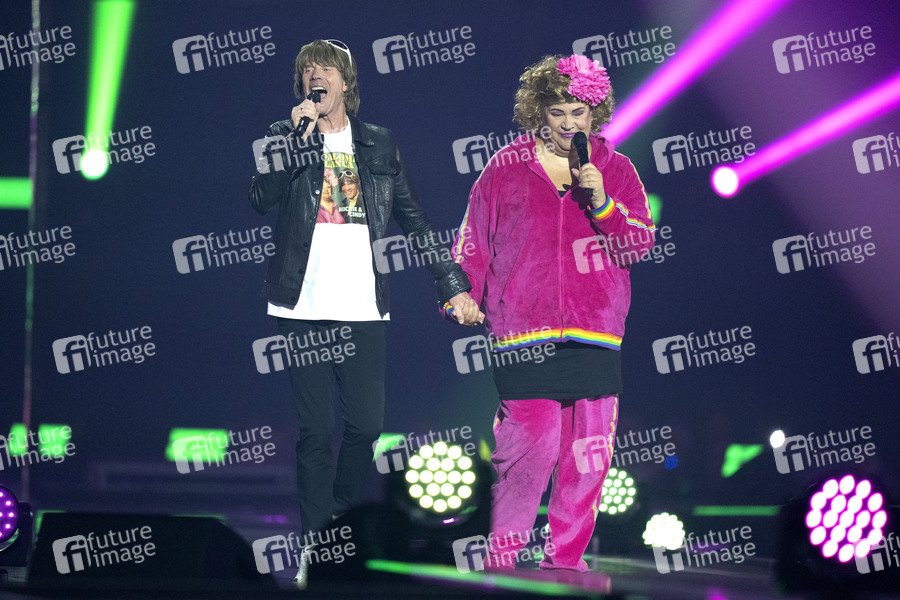 Mickie Krause und Cindy aus Marzahn in der TV-Show 'Schlagerbooom 2025 - Alles funkelt! Alles glitzert!' in der Westfalenhalle. Dortmund, 18.10.2025