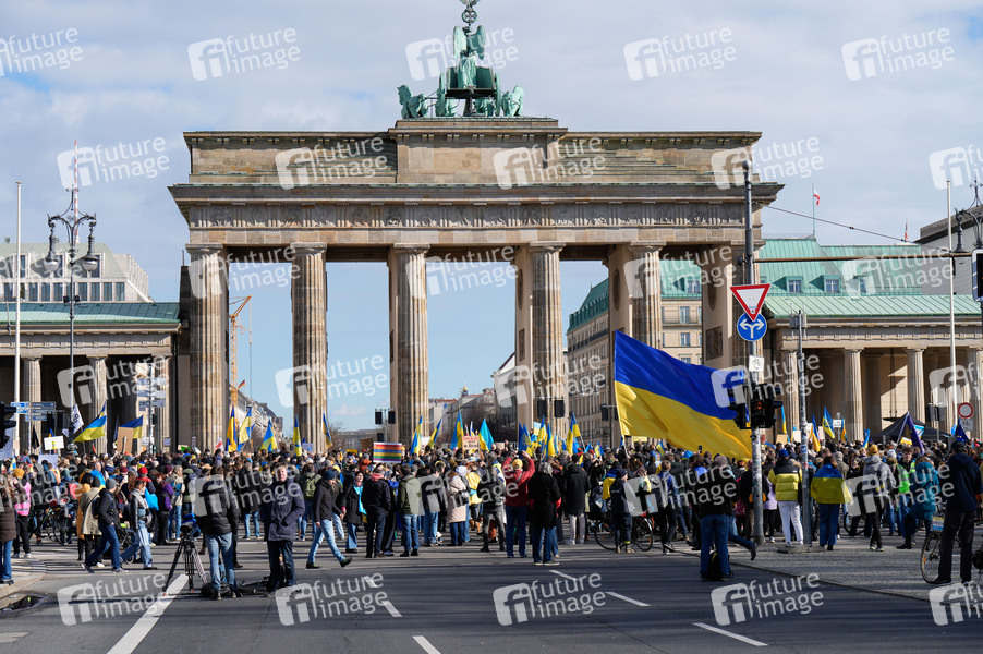 Anlässlich des zweiten Jahrestages des Beginns des Krieges von Russland gegen die Ukraine versammelten sich mehrere tausend Menschen bei einer Solidaritätsdemontration am Brandenburger Tor. Berlin, 24.02.2024