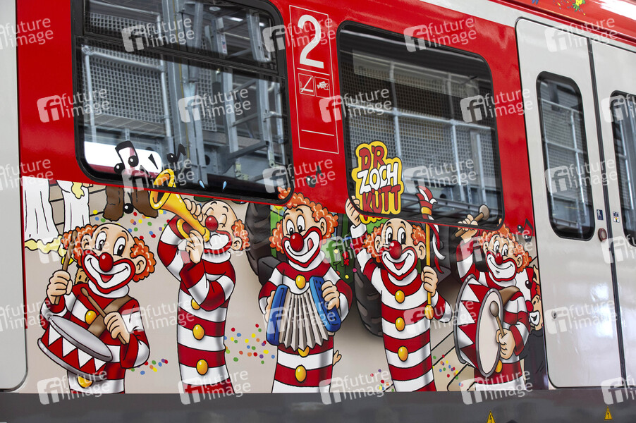 Karnevals-S-Bahn mit bunten Karnelvalsmotiven