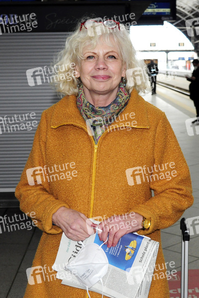 Karin Düwel bei der Ankunft zur Aufzeichnung der MDR-Talkshow 'Riverboat' im Studio 3 der Media City Leipzig. Leipzig, 05.03.2021