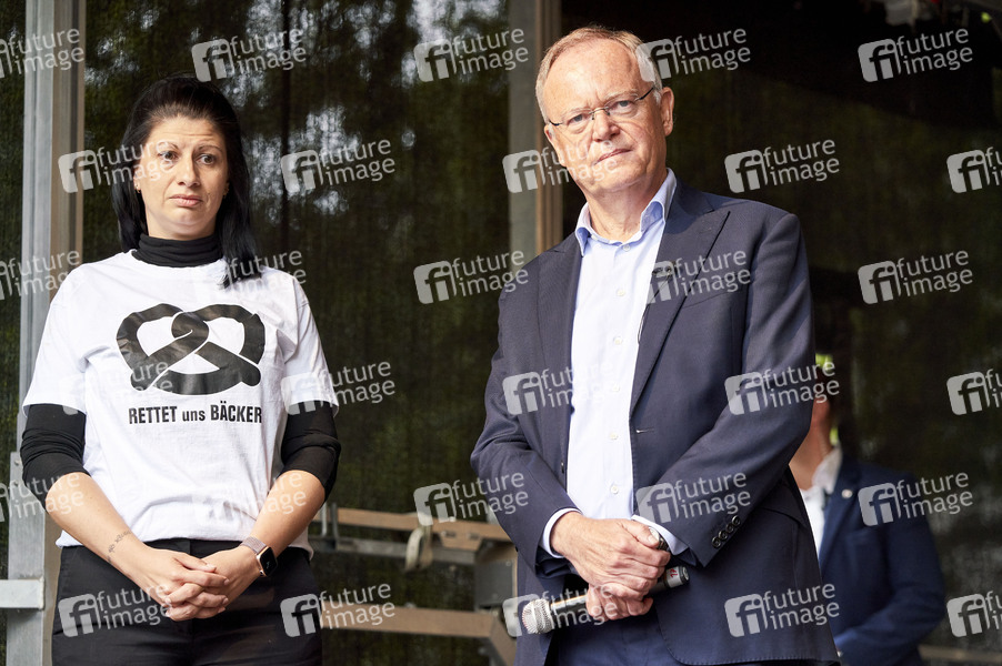 Demonstration, Demonstranten, Demo, Kundgebung, Protest, Aktion, Banner, Parolen, Politik, hohe Energiepreise, Alarmstufe Brot, Existenzängste, Bäckereibranche, Unternehmerin, Initiatorin der Bäcker Demonstration, Politiker, SPD, Ministerpräsident von Niedesachsen