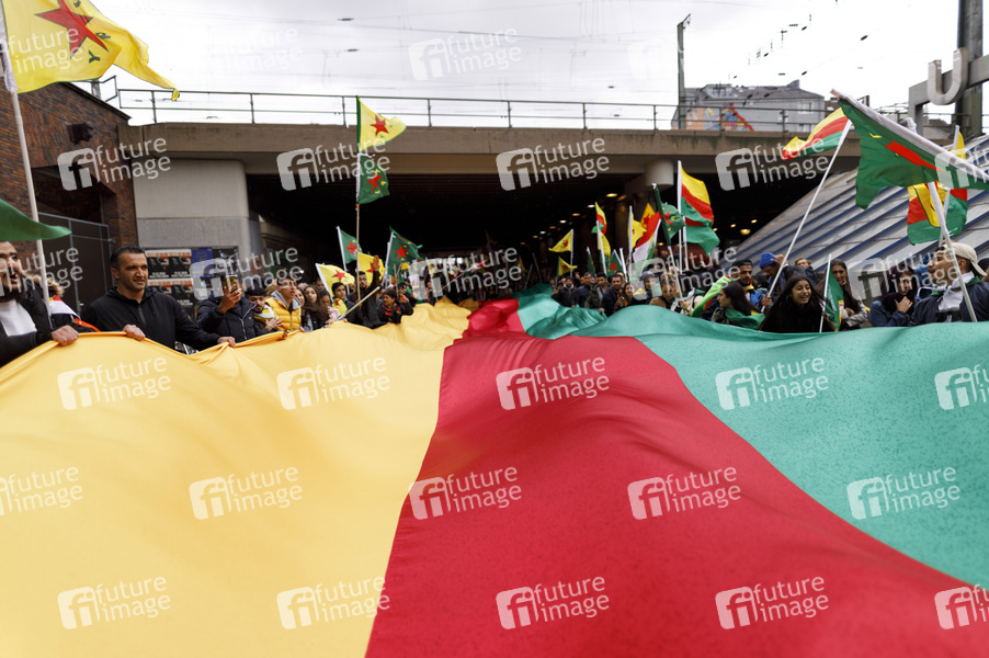 Kurdendemo, Kurden-Demonstration, Kurden-Demo, NavDem, Nav-Dem, YPG, Rojava, demokratisches Gesellschaftszentrum der Kurdinnen in Deutschland, PKK, Apo, kurdische Arbeiterpartei, Anti-Erdogan-Demo, Kurdistan, Demo, Demonstration, Demonstranten, Politik, Kurden, Kurde, kurdisch, Protest, Aktion, Demo gegen Erdogan, Fahne, Flaggen, Afrin, Syrien, Militäroffensive in Syrien, Türkei, Invasion, Einmarsch in Syrien, Versammlungsrecht, Nord-Syrien, Symbolbild, Symbolfoto