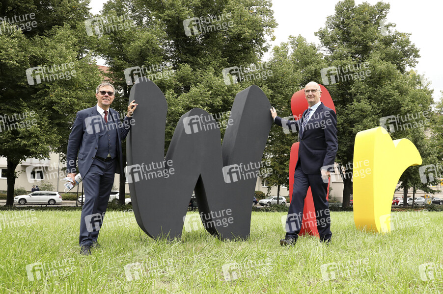 Burkhard Exner und Dietmar Woidke bei der Eröffnung der 'Einheits-Expo' zum 30. Jahrestag der deutschen Einheit. Potsdam, 05.09.2020