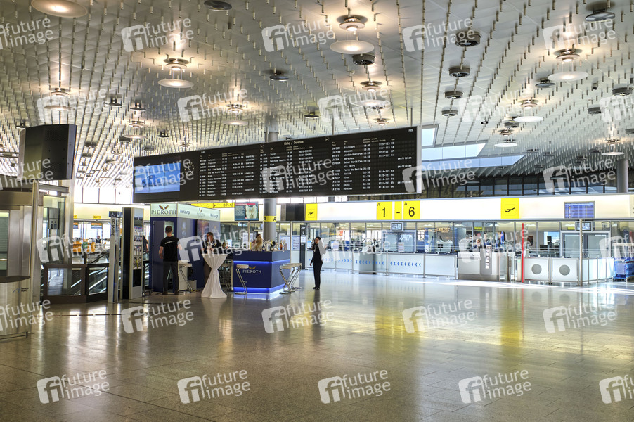 Nur wenige Reisende und gschlossenen Läden und Schalter wegen des Coronavirus am Hannover Airport. Hannover-Langehagen, 15.03.20