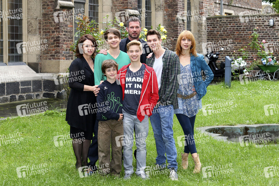 Tamara Rohloff, Lukas Karisch, Maurizio Magno, Simon Boeer, Tom Hossbach, Gerrit Klein und Annika Ernst beim Fototermin am Set der ZDF Fernsehserie 'Herzenbrecher - Vater von vier Söhnen' in der Kartäuserkirche. Köln, 06.05.2014
