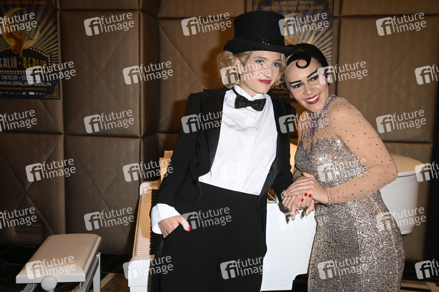 Lena Müller als Marlene Dietrich und Dominique Jackson als Josephine Baker bei der Pressekonferenz zur neu überarbeiteten Revue 'Berlin Berlin' im 20er-Jahre Hotel am Steinplatz. Berlin, 23.11.2021