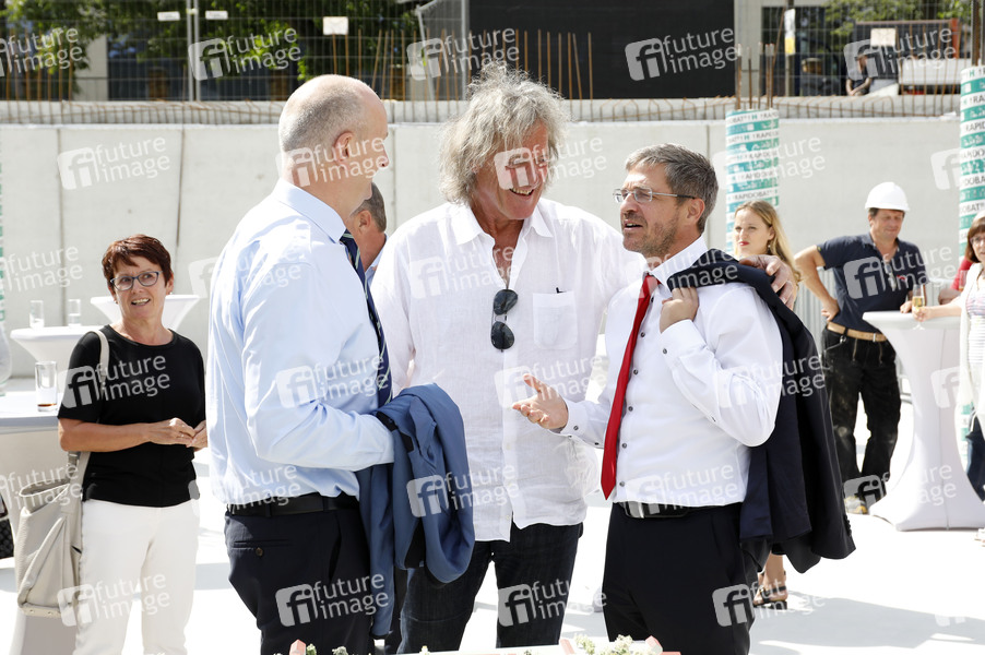 Dietmar Woidke, Friedhelm Schatz und Mike Schubert beim Pressetermin zur Grundsteinlegung von 'Das Depot' im Filmpark Babelsberg. Potsdam, 12.08.2019