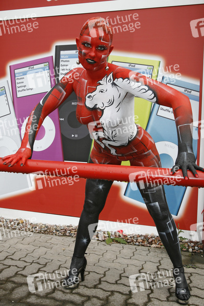 Bodypainting und Fotoshooting mit Model Sabine im Media Markt Hameln, anlässlich des 29. Tag der Niedersachsen. Künstler: Jörg Düsterwald