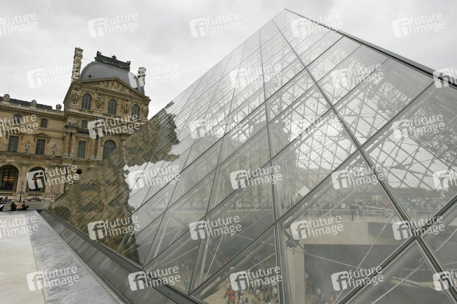frühere französische Königsresidenz, das drittgrößte Museum der Welt, Baubeginn 1190, der Louvre entwickelte sich aus eine ganzen Reihe von Bau- und Umbaumaßnahmen, Glaspyramide im Innenhof 1989 erbaut vom Architekten Ieoh Ming Pei