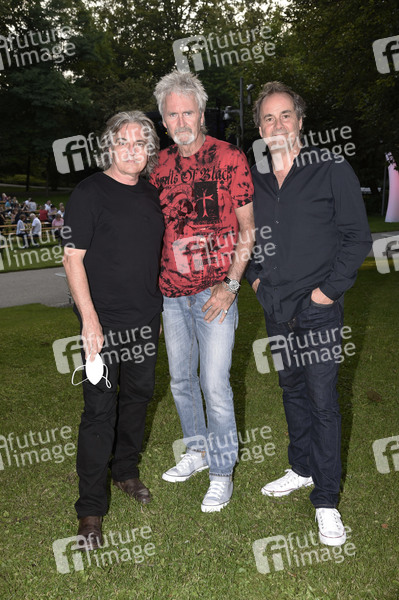 Peter Howarth, Pete Lincoln und Mick Wilson von Frontm3n beim Open Air Konzert im Kurpark in Bad Aibling. 13.08.2021