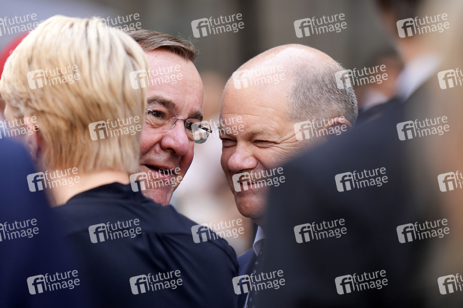 Boris Pistorius und Olaf Scholz bei der Gedenkveranstaltung zum 80. Jahrestag des Aufstands gegen Nationalsozialistische Gewaltherrschaft mit Kranzniederlegung auf dem Ehrenhof des Bendlerblocks.Berlin, 20.07.2024