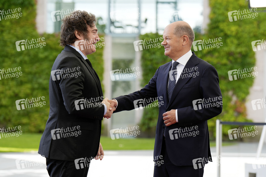 Javier Milei und Olaf Scholz beim Empfang des Präsidenten von Argentinien zu einem gemeinsamen Gespräch im Bundeskanzleramt. Berlin, 23.06.2024