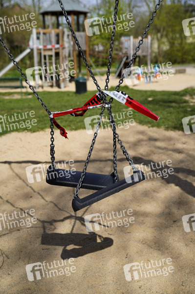 Absperrung, Absperrband, Spielplatz, Kinderspielplatz, Virus, Viren, Corona, Sars-CoV-2, Covid-19, Coronavirus, Coronaviren, Corona-Virus, Corona-Viren, Ansteckung, Ansteckungsgefahr, Epidemie, Pandemie, Infektion, Infektionen, anstecken, Vorbeugung, Prävention, schützen, Schutz, Notstand, Ausgangssperre, Ausgangssperren, Ausgangsbeschränkung, Ausgangsverbot, Notstandsgesetze, Social Distancing, Selbstquarantäne, zu Hause bleiben, Selbstisolation, soziale Kontakte, Risiko, Maßnahmen, Coronamaßnahmen, Corona-Infektion, Corona-Infektionen, Corona-Schutz, menschenleer, #stay home, #stayhome, Symbolfoto, Symbolbild