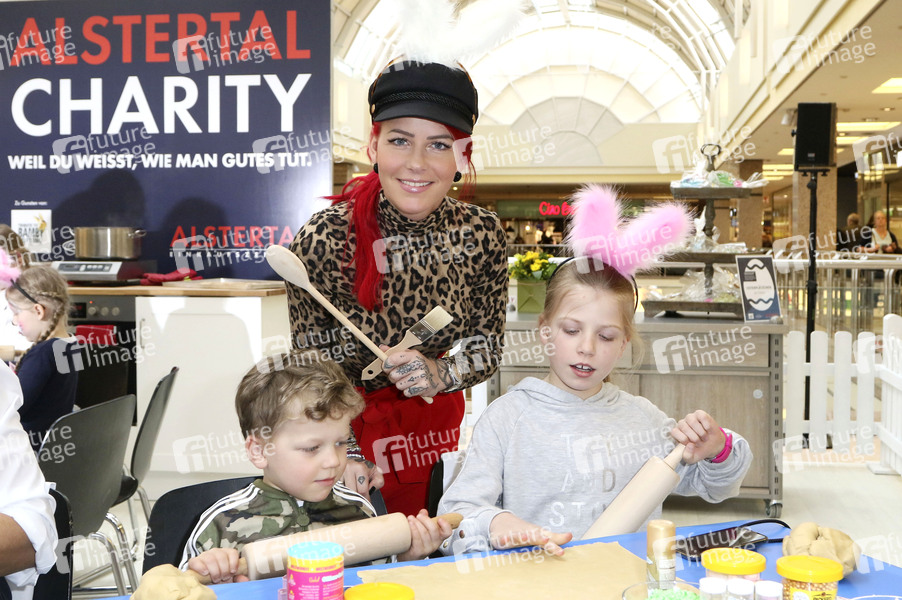 Dana Diekmeier mit Tochter Delani und Sohn Dion beim Promi-Osterbacken zugunsten der Tribute to Bambi Stiftung im Alstertal-Einkaufszentrum. Hamburg, 28.03.2019