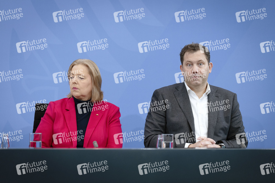 Bärbel Bas und Lars Klingbeil bei einer Pressekonferenz nach der Sitzung des Koalitionsausschusses von Union und SPD im Kanzleramt. Berlin, 11.12.2025