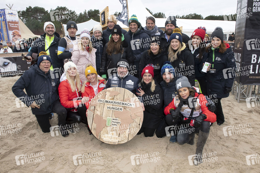 Wolfgang Lippert, Robert Redweik, Franziska Knuppe, Hendrik Duryn, Susan Sideropoulos, Gesine Lippert, Fabian Busch, Jan Sosniok, Simone Thomalla, Till Demtroeder, Bernhard Bettermann, Vanessa Marx, Kai Wiesinger, Anja Kling, Matthias Killing, Antoine Monot jr. Nina Ensmann, Gerit Kling, Bettina Zimmermann und Susanne Fotiadis beim Baltic Lights 2022 Charity-Hunderennen zu Gunsten der Welthungerhilfe zwischen der Seebrücke Ahlbeck und der Seebrücke Heringsdorf. Heringsdorf, 05.03.2022