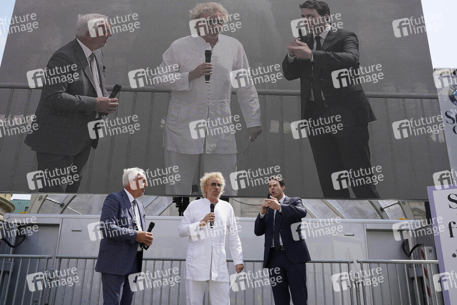 Hans-Reiner Schröder, Thomas Gottschalk und Matthias Schulz beim 'Staatsoper für alle 2019' Event mit der Live-Übertragung von Richard Wagners 'Tristan und Isolde' aus der Staatsoper auf dem Bebelplatz. Berlin, 15.06.2019