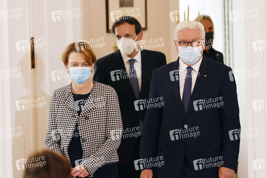 Elke Büdenbender und Frank-Walter Steinmeier bei der Verleihung des Verdienstkreuzes 1. Klasse an Brigadegeneral Jens Arlt im Schloss Bellevue. Berlin, 17.09.2021