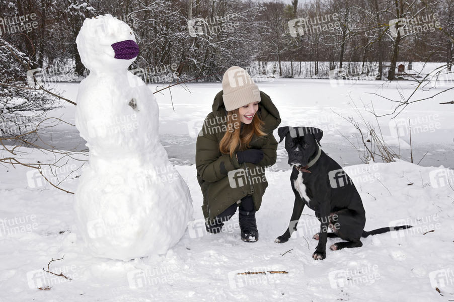 Lena Meckel mit ihrem Hund Ludwig beim Winterspaziergang im Ostpark. München, 07.01.2021