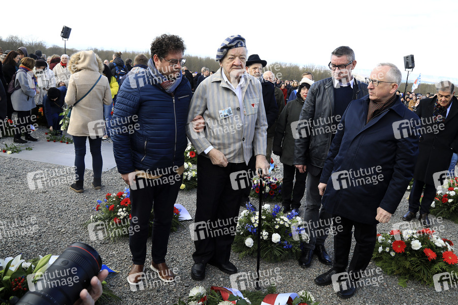 Alojzy Maciak aus Warschau, Überlebender des KZ Buchenwald, bei der Kranzniederlegung zum 80. Jahrestag der Befreiung des Konzentrationslagers Buchenwald und Mittelbau-Dora. Weimar, 06.04.2025