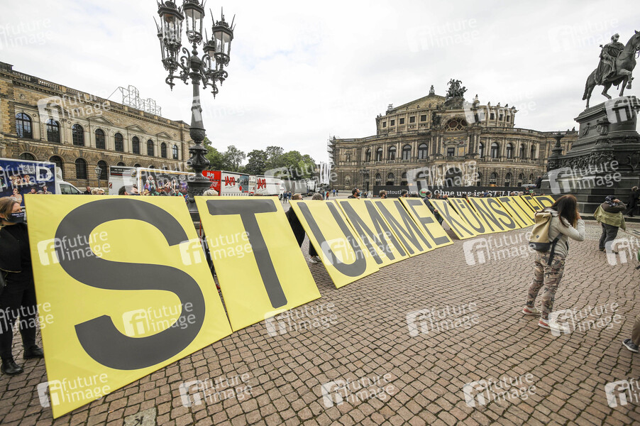 Demonstration 'Ohne uns ist Stille' der Organisation 'Leere Stühle' auf dem Theaterplatz in der historischen Dresdner Altstadt. Künstler, Veranstalter und Unternehmen der Veranstaltungsbranche wie Caterer und Techniker demonstrieren gemeinsem, um auf die Probleme und Wichtigkeit ihrer Branche aufmerksam zu machen. Dredsen, 05.06.2020