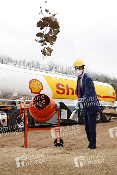 Politiker, CDU, Union, Ministerpräsident des Landes Nordrhein-Westfalen, NRW-Ministerpräsident, Auftritt, Shell, Industrie, Raffinerie, Royal Dutch Shell, Produktionsanlage, Gaskonzern, Gasindustrie, Ölindustrie, Ölkonzern, Treibstoff, Klimaziele, Förderung, Energiewende, Chemieindustrie, Kohlendioxid-Ausstoß, Gas, Erneuerbare Energien, Umweltschutz, Energietechnik, Umweltpolitik, Gaspreis, Gaspreise, Industriepolitik, Energiepolitik, Shell Energy, Chemicals Park Rheinland, CO2-neutral, Nachhaltigkeit, CO2-Neutralität, Biogas, Bio-Gas, Bio-LNG, flüssiges Gas, Biomethan, Methangas, Methan-Gas, Baustelle, Spatenstich
