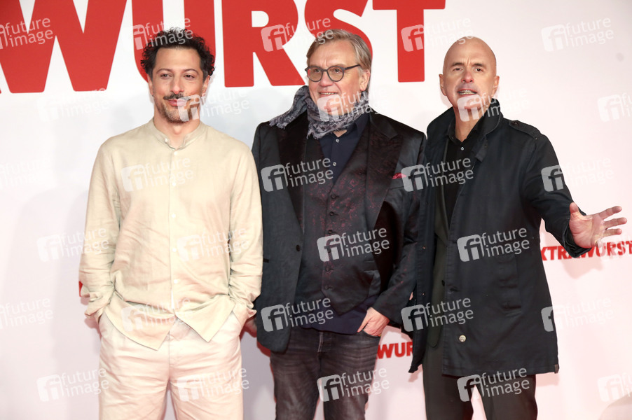 Fahri Yardim, Hape Kerkeling und Christoph Maria Herbst bei der Weltpremiere des Kinofilms 'Extrawurst' in der Lichtburg. Essen, 07.01.2026