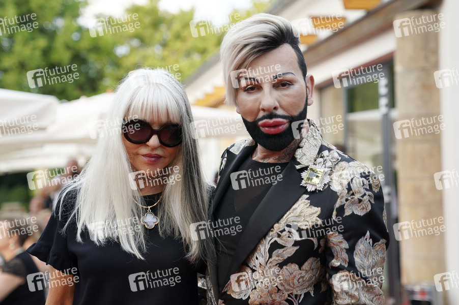 Harald Glööckler mit Rita Schmidt beim Pre-Opening des ersten Café Pompöös im Kurpark. Bad Dürkheim, 28.08.2019