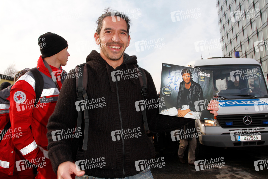 David Hasselhoff protestiert an der East Side Gallery gegen Abbau der Berliner Mauer. Berlin, 17.03.2013