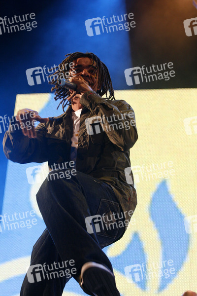 Culcha Candela live beim Coca Cola 'Soundwave 2007' vor dem Brandenburger Tor in Berlin. Die Sänger Jonny Strange (Uganda), Larsito (Kolumbien), Itchyban (Polen), Lafrotino (Kolumbien), Mr. Reedoo (Deutschland), Don Cali (Kolumbien) und DJ Chino con Estilo (Republik Korea)