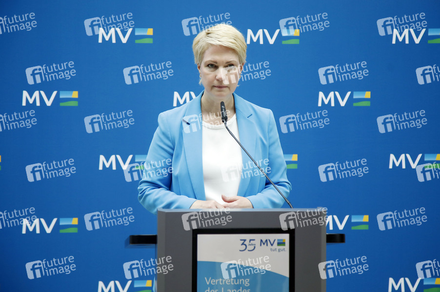 Manuela Schwesig bei einer Pressekonferenz in der Landesvertretung Mecklenburg-Vorpommern beim Bund. Berlin, 08.07.2025