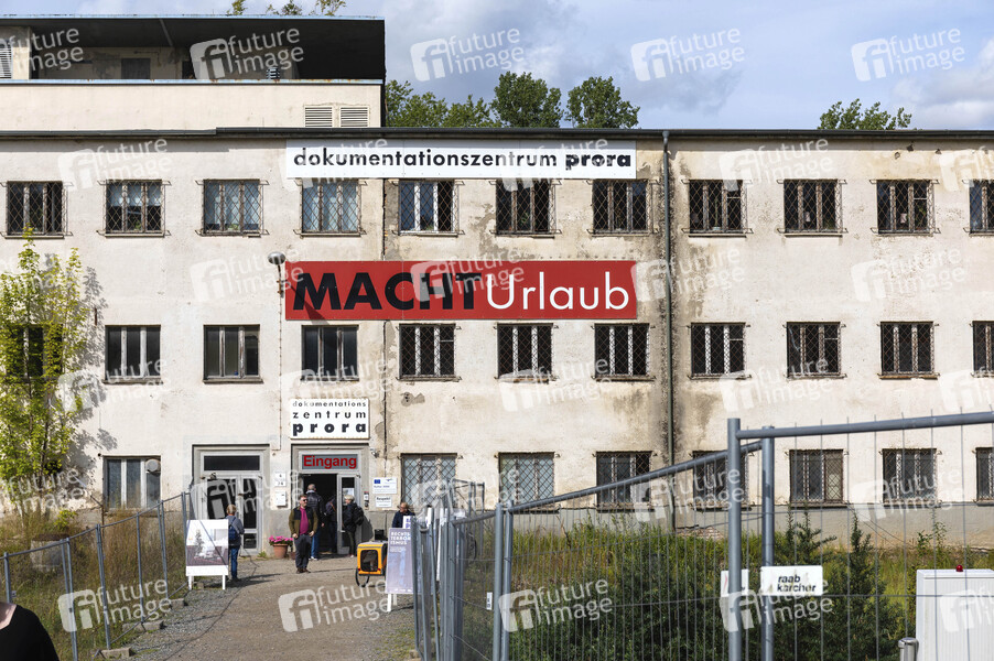 Dokumentationszentrum Prora - Prora ist ein Ortsteil der Gemeinde Binz auf Rügen. Er liegt direkt an der Ostseeküste im Zentrum der Prorer Wiek und ging aus dem zwischen 1936 und 1939 gebauten, jedoch unvollendet gebliebenen KdF-Seebad Rügen hervor. Im Komplex sollten durch die Organisation Kraft durch Freude (KdF) 20.000 Menschen gleichzeitig Urlaub machen können. Prora, 09.10.2024