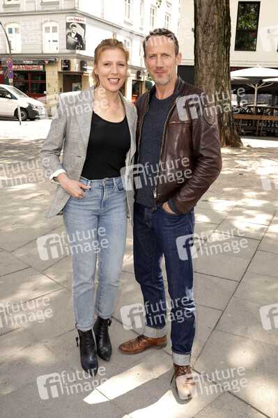 Franziska Weisz und Wotan Wilke Möhring beim Fototermin am Set des ARD-Krimis 'Tatort - Die goldene Zeit' auf St. Pauli. Hamburg, 14.05.2019