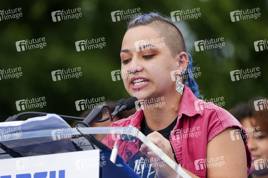 Waffenkontrollaktivistin X Gonzalez spricht auf dem March for Our Lives. Tausende Menschen demonstrieren gegen die landesweite steigende Waffengewalt und fordern den Kongress auf, Schritte zu ihrer Beendigung zu unternehmen. March for Our Lives wurde von Überlebenden der Massenschießerei 2018 an einer High School in Parkland, Florida gegründet. Washington, 11.06.2022