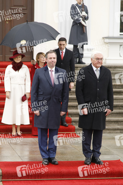 Guillaume V. Großherzog von Luxemburg und Frank-Walter Steinmeier bei der Begrüßung des Großherzogs von Luxemburg mit militärischen Ehren und zum gemeinsamen Gespräch im Schloss Bellevue. Berlin, 27.10.2025