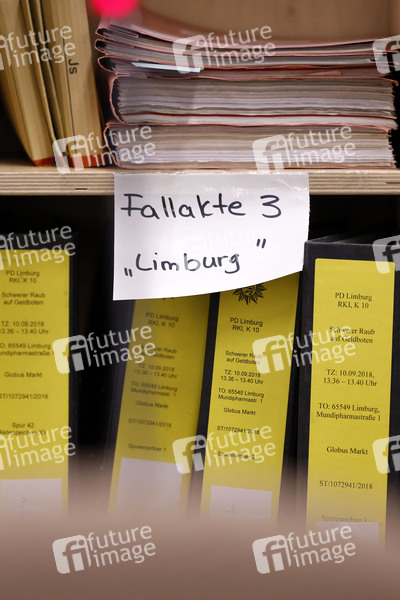 Fallakten im Prozess um u.a. den Angeklagten Thomas Drach vor dem Kölner Landgericht. Der 61-jährige frühere Reemtsma-Entführer soll vier Geldtransporter in Köln, Frankfurt am Main und Limburg überfallen haben. Die Anklage lautet unter anderem auf versuchten Mord und besonders schweren Raub. Der Prozess findet unter aufwendigen Sicherheitsvorkehrungen statt. Köln, 07.02.2022