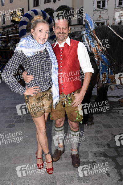 Michel Guillaume mit Ehefrau Georgia bei der Vorstellung der Playboy Wiesn-Playmate 2020 vor dem Hofbräuhaus. München, 09.09.2020