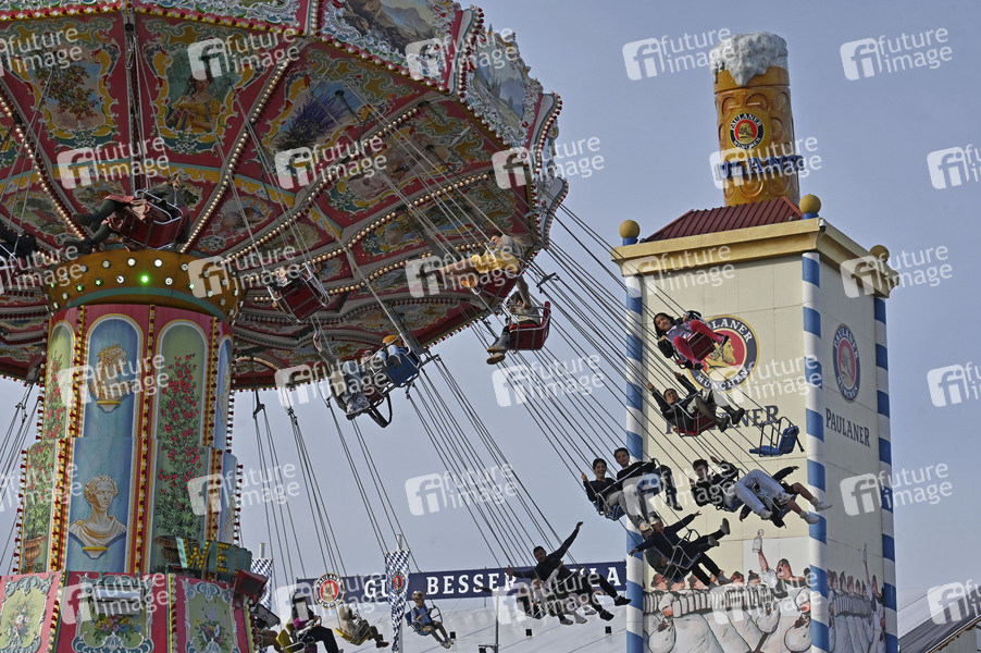 Feature, Unterhaltung, Entertainment, Kultur, Fest, Volksfest, 189. Wiesn, Wies'n, Fahrgeschäft, Vergnügungsattraktion, Schausteller, Festzelt, Festzelte, Vergnügen, Alkohol, Bier, Maß, Alkoholkonsum, Trachten, Brauerei, Brauereien, Gastronomie, Wiesnbesucher, Menschenmassen, Symbolfoto, Symbolbild, Themenbild, Themenfoto