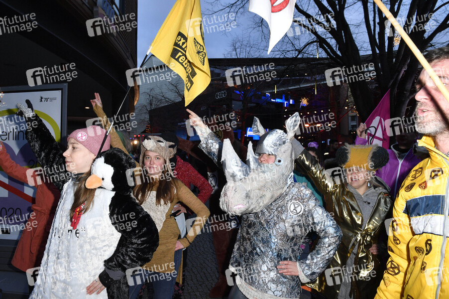 Umweltaktivisten von Extinction Rebellion demonstrieren bei der Closing Ceremony auf der Berlinale 2020 / 70. Internationale Filmfestspiele Berlin am Berlinale Palast. Berlin, 29.02.2020