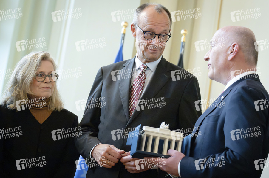 Friedrich Merz und Kai Wegner beim Antrittsbesuch des Bundeskanzlers im Roten Rathaus. Berlin, 03.12.2025