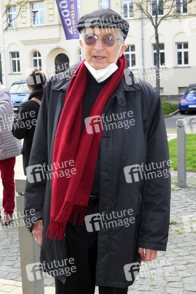Gerhart Baum bei der Ankunft zur Aufzeichnung der MDR-Talkshow 'Riverboat' im Studio 3 der Media City Leipzig. Leipzig, 23.04.2021