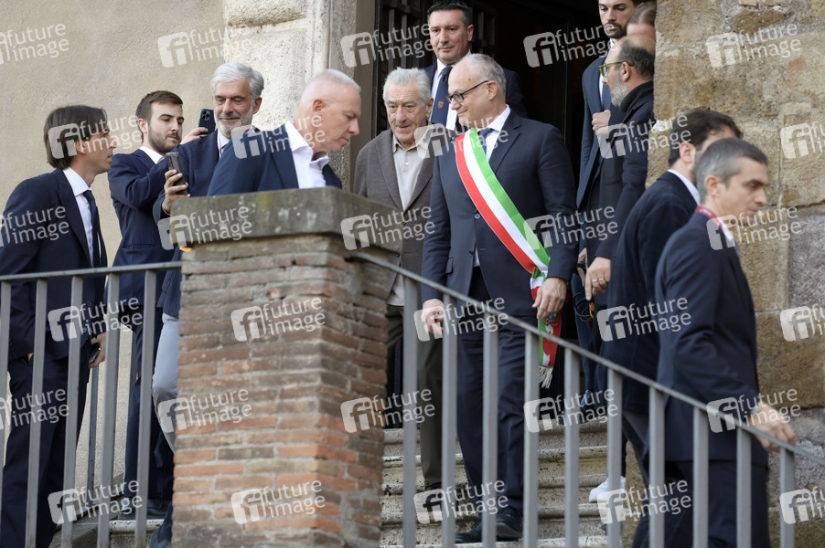 Robert de Niro und Roberto Gualtieri nach der Verleihung des Lupa Capitolina auf dem Kapitolsplatz. Rom, 06.11.2025