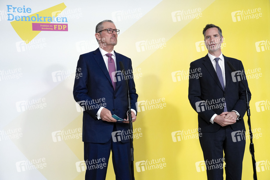 Rainer Dulger und Christian Dürr beim Wirtschaftstreffen der FDP mit dem Mittelstand im Deutschen Bundestag. 29.10.2024