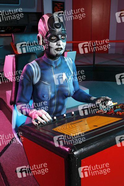 GEEK ART - Bodypainting meets SciFi, Fantasy and more: 'Star Trek Discovery' Photoshooting mit Model Barbara Wegener als Airiam auf der Brücke vom Raumschiff Enterprise im Filmwelt Center. Bad Münder, 18.04.2019 - Ein Projekt des Fotografen Tschiponnique Skupin und des Bodypainters und Transformakers Enrico Lein