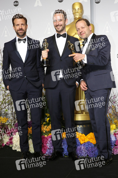 Jason Sudeikis mit Anders Walter und Kim Magnusson mit Oscars für den besten Kurzfilm 'Helium' bei der Oscar Verleihung 2014 / 86th Academy Awards Preisverleihung im Dolby Theatre, Hollywood. Los Angeles, 02.03.2014